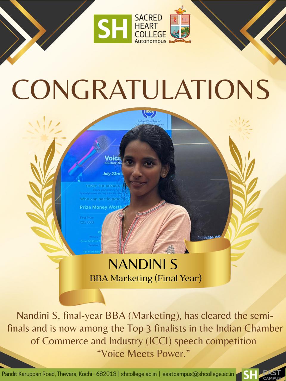 BBA Finalist Nandini S Secures Spot in Top 3 of Prestigious ICCI Speech Competition