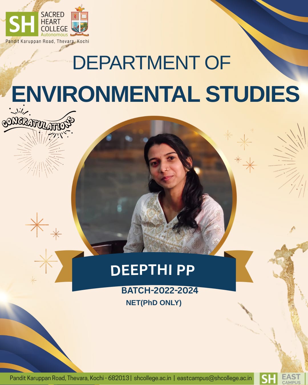 Department of Environmental Studies Student Deepthi P. P. (Batch 2022–2024) Qualifies UGC NET