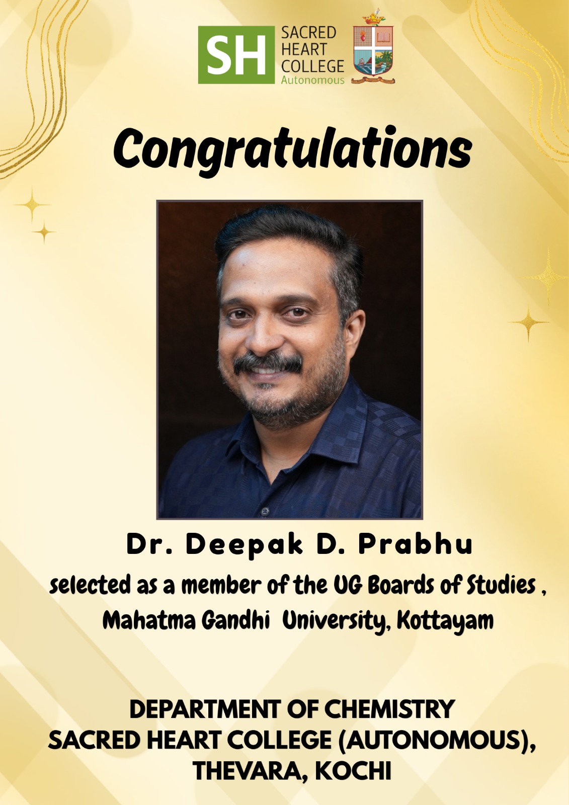 Dr. Deepak D. Prabhu Appointed to UG Board of Studies at Mahatma Gandhi University, Kottayam
