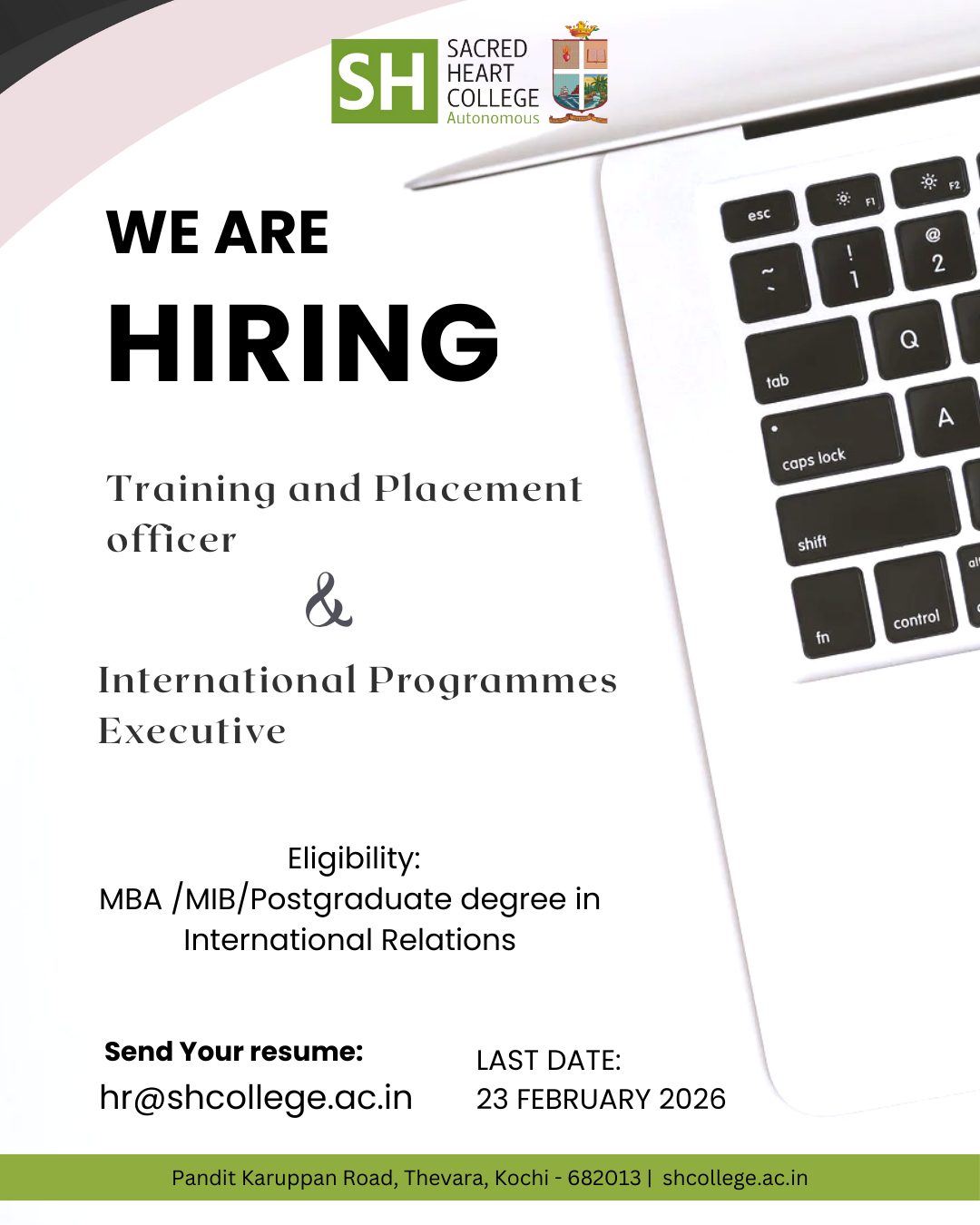 Interested candidates may send their updated resume to hr@shcollege.ac.in