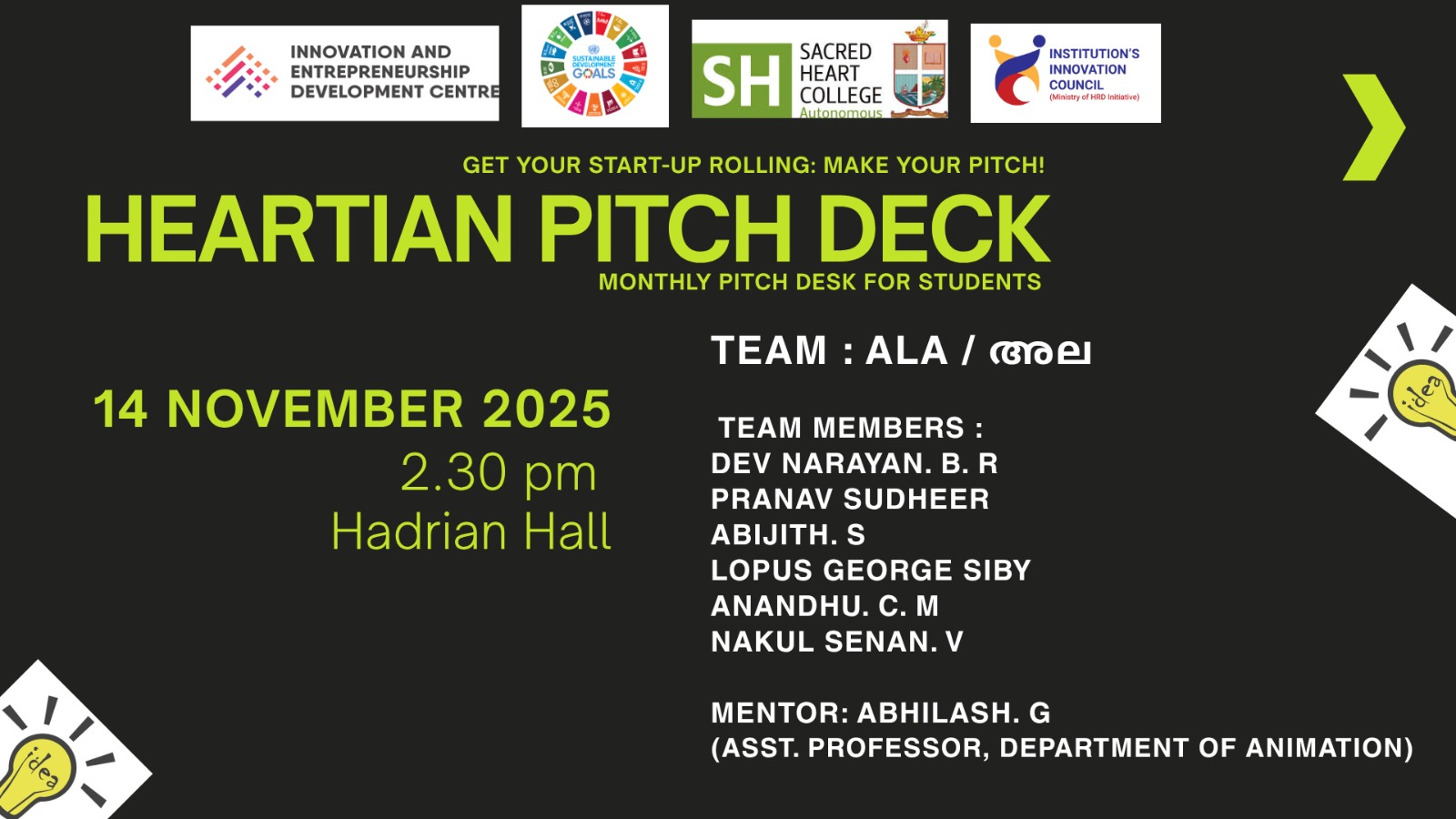The Institution’s Innovation Council (IIC), Entrepreneurship Development (ED) Club, and IEDC jointly organize a Monthly Pitch Deck to nurture the entrepreneurial spirit among students and faculty. The primary aim of this initiative is to provide a platform where innovative start-up ideas can be presented before an eminent evaluation panel. Selected ideas will receive guidance, mentoring support, and opportunities for incubation at the SH Business Incubation Centre.