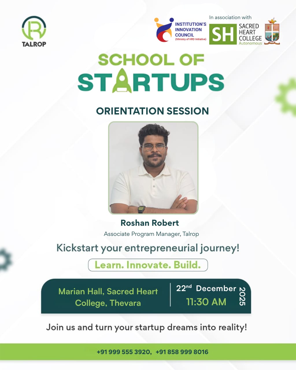The Institution’s Innovation Council (IIC) and the Institution’s Innovation and Entrepreneurship Development Centre (IEDC), in collaboration with Tarlop, are organizing “School of Startups,” an exclusive programme designed for first-year undergraduate students. The session will be held on Monday, 22 December 2025, at 11:15 a.m. in Dr. Manmohan Hall. All first-year class groups are requested to share this information with their students and encourage interested participants to register by filling out the Google Form provided below: