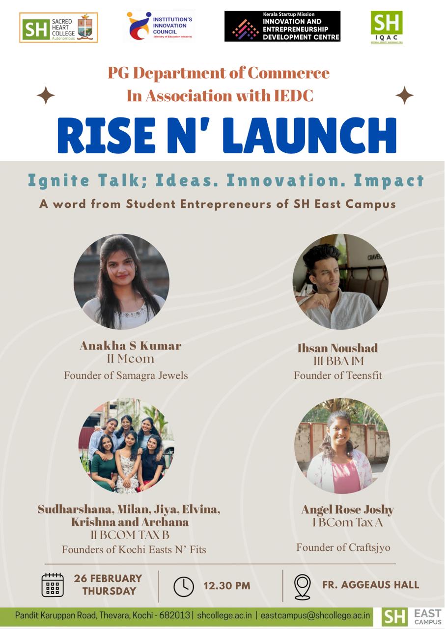 The PG Dept of Commerce in association with IEDC is conducting an experience sharing session with few of our student entrepreneurs. The students of S4 VAC Entrepreneurship Development, S4 SEC E-Commerce and S2 MDC Introduction to Commerce will be conducting this event.
