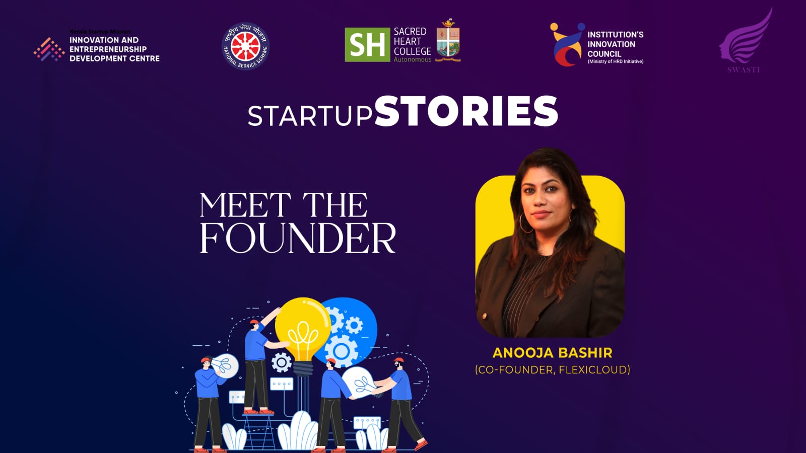 Exciting News! Join us for "Startup Stories: Meet the Founder" with Anooja Bashir, Co-founder of Flexicloud, in the Fr. Melesius Hall. This event is hosted by Sacred Heart College (Autonomous) in collaboration with the Innovation and Entrepreneurship Development Centre (IEDC), National Service Scheme (NSS), Institution's Innovation Council (IIC) (Ministry of HRD Initiative), and SWASTI. The session is a unique opportunity to learn straight from a successful entrepreneur about building startups, overcoming challenges, and turning ideas into reality. The event is scheduled for