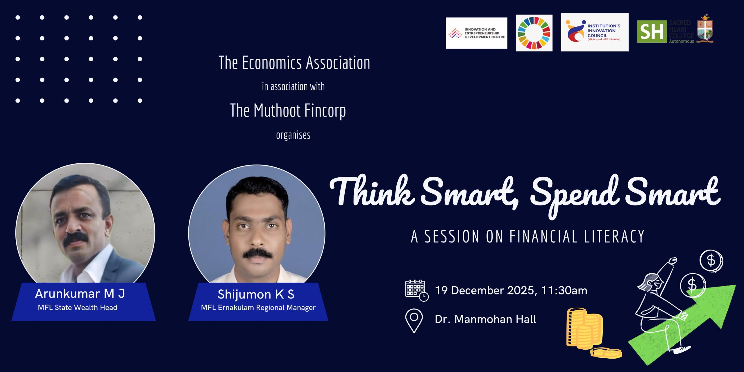 The Economics Association, in association with The Muthoot Fincorp, is organising “Think Smart, Spend Smart”, a session on financial literacy aimed at promoting informed and responsible financial decision-making. The session will be led by Mr. Arunkumar M. J., State Wealth Head, MFL, and Mr. Shijumon K. S., Ernakulam Regional Manager, MFL. The programme is scheduled to be held on 19 December 2025 at 11:30 a.m. at Dr. Manmohan Hall.