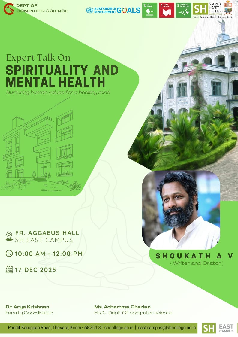 An Expert Talk on “Spirituality and Mental Health – Nurturing Human Values for a Healthy Mind” was conducted at Fr. Aggaeus Hall, SH East Campus, on 17 December 2025, from 10:00 AM to 12:00 PM. The session was led by Shoukath A. V., Writer and Orator, who offered insightful perspectives…