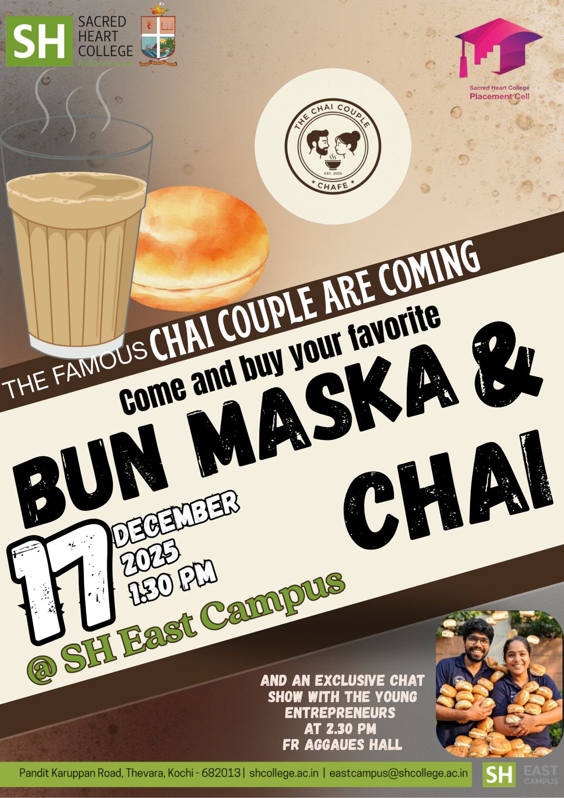 The Placement Cell is organizing an expert talk featuring The Famous Chai Couple, renowned young entrepreneurs, at SH East Campus on 17 December 2025. The event will begin at 1:30 PM with an opportunity to enjoy their signature Bun Maska and Chai, followed by an exclusive chat show at 2:30…