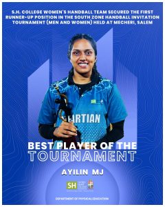 S.H. College Women’s Handball Team Shines as First Runners-Up at South Zone Tournament