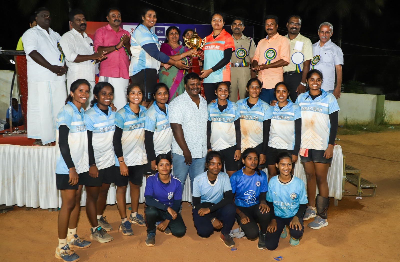 In a momentous sporting achievement, the Ernakulam Team emerged victorious in the Kerala State Women Handball Championship, etching their names in history as the first-ever champions from the district. The tournament witnessed fierce competition from 14 districts across the state, but Ernakulam's team displayed exceptional skills and determination to clinch the coveted trophy ?.