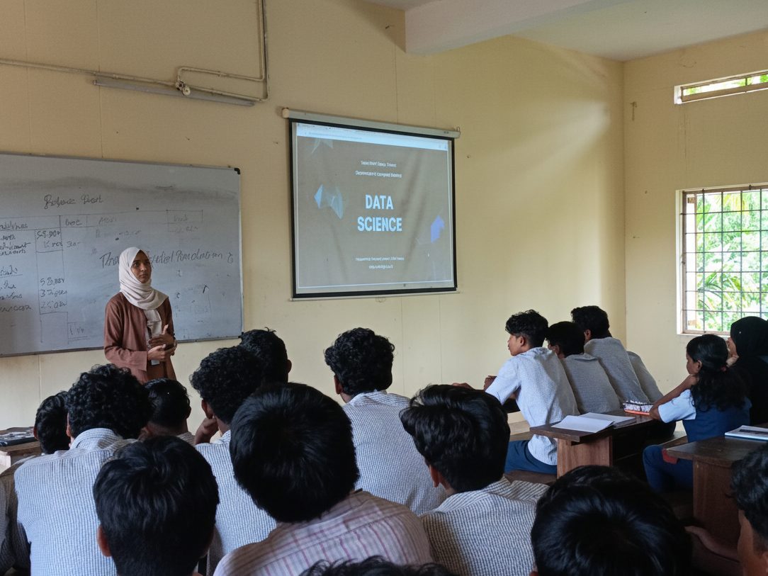 The Department of Computer Science at Sacred Heart College (Autonomous), Thevara, conducted an impactful outreach session titled “Exploring the Digital World: Intro to Data Science & Cyber Hygiene” on September 25, 2025, at VHSS Panangad. The event was specifically designed to introduce higher secondary students to the fundamentals of Data Science and essential Cyber Hygiene practices. The session was led by the department's Integrated M.Sc. Computer Science (Data Science) students, under careful faculty guidance. Key topics covered included data visualization, an overview of AI and machine learning, and critical online safety measures. Through interactive demonstrations and discussions, the program successfully fostered awareness about responsible digital behavior and motivated the students to consider career paths in emerging technology fields.