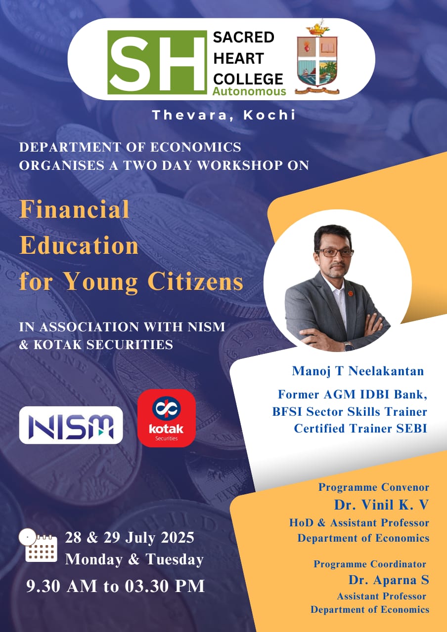 Sacred Heart College, Thevara, Kochi, is conducted a two-day workshop on "Financial Education for Young Citizens" on 28 and 29 July 2025. Organised by the Department of Economics with NISM and Kotak Securities, the workshop featured expert Manoj T Neelakantan. The programme provided great insights into financial literacy and planning. The participants wee issued certificates by NISM.