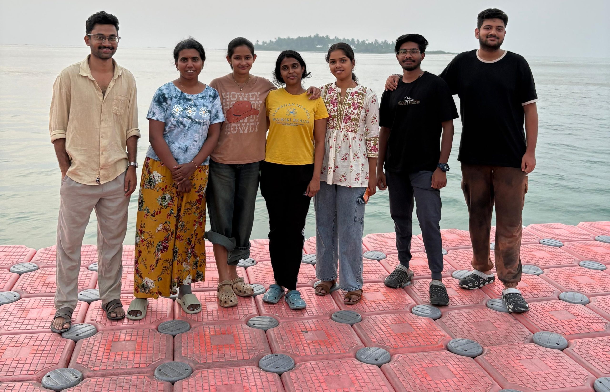 The Department of Environmental Studies organized the Semester II Field Study visit to Kavaratti, in Lakshadweep, for the academic year 2025–2026 as part of the Marine Ecosystem field course. The team departed from Kochi on 26 January 2026 aboard MV Lakshadweep and reached Kavaratti on 27 January 2026. During the visit, students conducted field investigations at four sampling locations around the island, where they measured physico-chemical parameters of seawater and sediment observed lagoon characteristics, documented marine biodiversity, and studied coastal processes in-situ. A glass-bottom boat survey provided direct exposure to coral reef ecosystems, reef-associated fish diversity, and lagoon dynamics. The students also visited artificial coral plantation sites, gaining insight into reef restoration initiatives and marine conservation practices. The return journey commenced on 29 January 2026 by the vessel Cheriyapani via Kalpeni, and the team reached Kochi on 30 January 2026. The field programme enabled students to apply theoretical concepts, understand marine ecosystem functioning through experiential learning, identify ecologically fragile reef areas, and develop teamwork and scientific reporting skills as required by the course design.