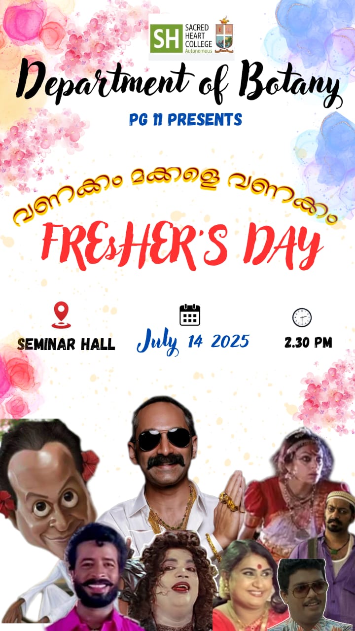 The Department of Botany, Sacred Heart College, Thevara, organized a cheerful and memorable Freshers’ Day on 14th July 2025 from,2.30 to 4.30 PM at Botany Seminar Hall to welcome the PG first-year students. The program commenced with a prayer song followed by a warm welcome address by the senior students. The event was presided by Dr. Ebin P J, Head of the Department, who encouraged the students to embrace research and teamwork in their academic journey. After the formal session, the celebration continued with cultural performances by both first- and second-year PG students. The stage came alive with a variety of programs including songs, dances, skits, and fun games. The newcomers introduced themselves with enthusiasm, and the interactive sessions helped strengthen the bond between the students. The celebration concluded with a gratitude delivery First year PG students followed by refreshments and a group photo, capturing the spirit of togetherness. The PG Freshers’ Day 2025 was a grand success, marking a delightful beginning for the new batch of budding botanists.