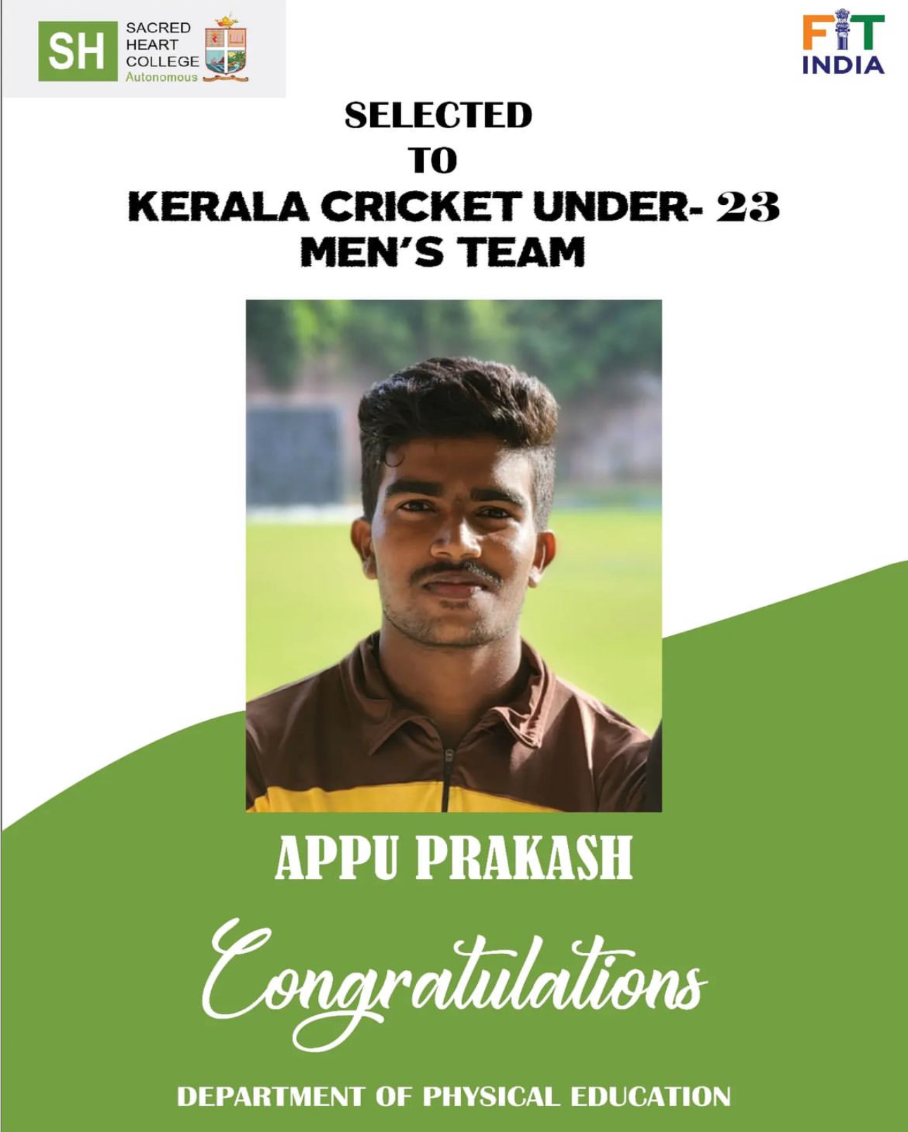 Appu Praksh Our cricket player SELECTED TO KERALA CRICKET UNDER- 23 MEN'S TEAM