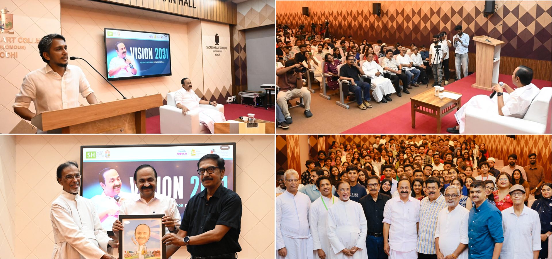 രാഷ്ട്രീയ പോരാട്ടങ്ങളുടെ കനൽവഴികളിൽ തന്നെ രൂപപ്പെടുത്തിയെടുത്ത തന്റെ ആ പഴയ കലാലയത്തിലേക്ക് വി. ഡി. സതീശൻ വീണ്ടുമെത്തി. രാഷ്ട്രീയ നേതാവായിട്ടല്ല, മറിച്ച് കേരളത്തിന്റെ പ്രതിപക്ഷ നേതാവെന്ന നിലയിൽ പബ്ലിക് റിലേഷൻസ് കൗൺസിൽ ഓഫ് ഇന്ത്യയുടെ യുവജന വിഭാഗമായ യങ് കമ്മ്യൂണിക്കേറ്റേഴ്സ് ക്ലബ് സേക്രഡ് ഹാർട്ട് ചാപ്റ്റർ സംഘടിപ്പിച്ച “വിഷൻ 2031 – യൂത്ത് വോയിസ് ഫോർ ഫ്യൂച്ചർ കേരള” സംവാദ പരിപാടിയിൽ വിവിധ കോളേജുകളിലെ വിദ്യാർത്ഥികളോട് സംവദിക്കാൻ.