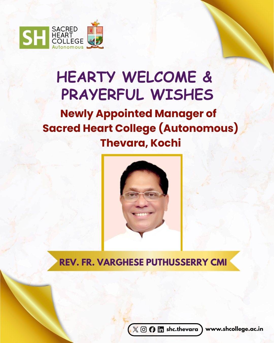 Sacred Heart College (Autonomous), Thevara, Kochi, extends a warm welcome to the newly appointed Manager, Rev. Fr. Varghese Puthusserry CMI. We wish him every success and divine guidance as he assumes this important leadership role. May his tenure be marked by wisdom, vision, and continued growth for the entire college…