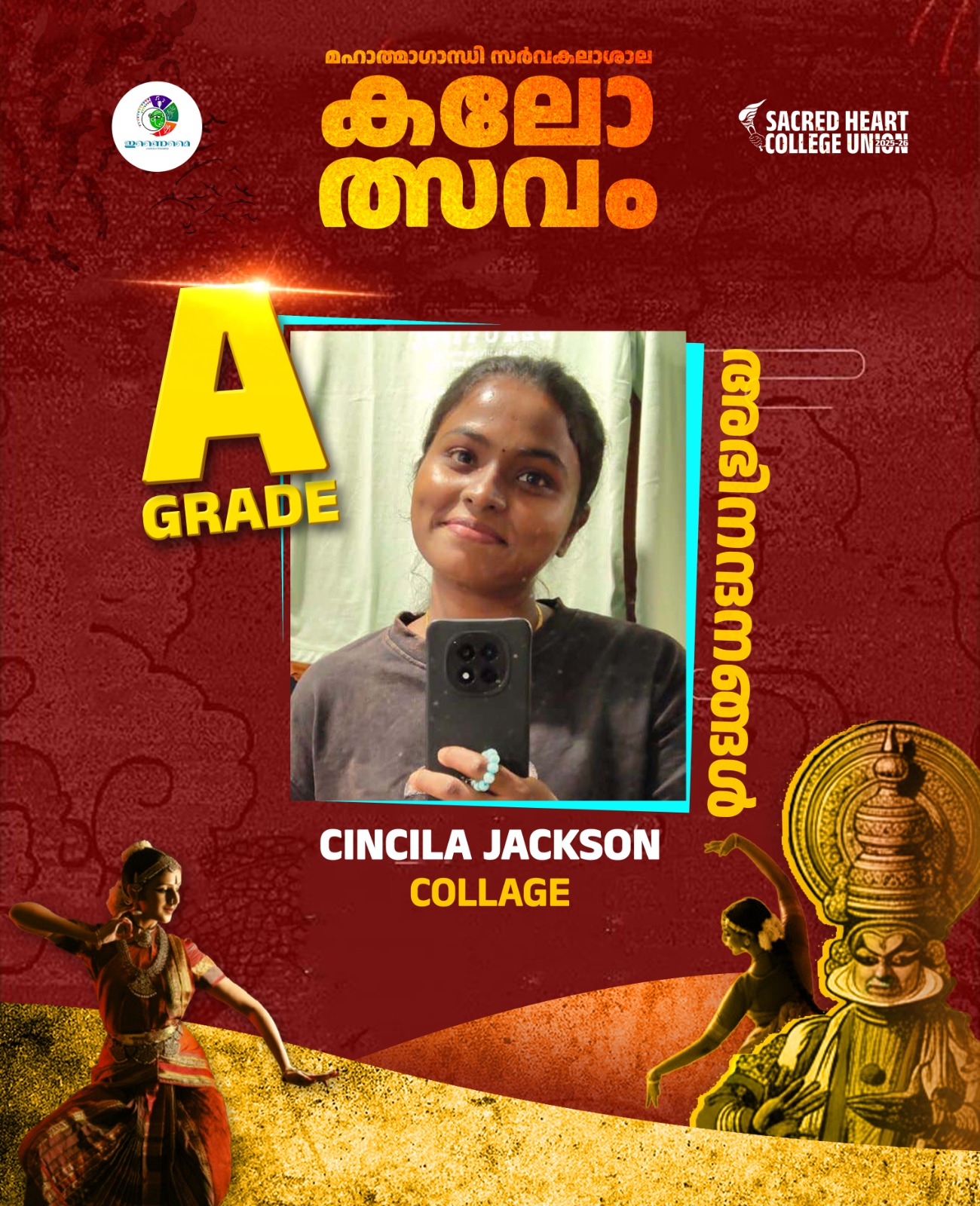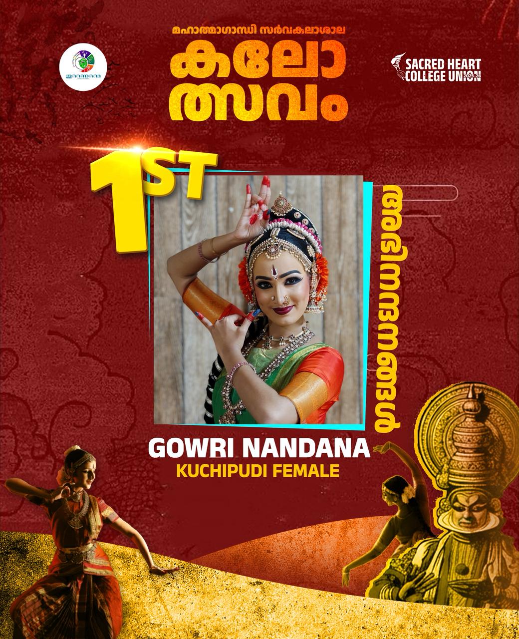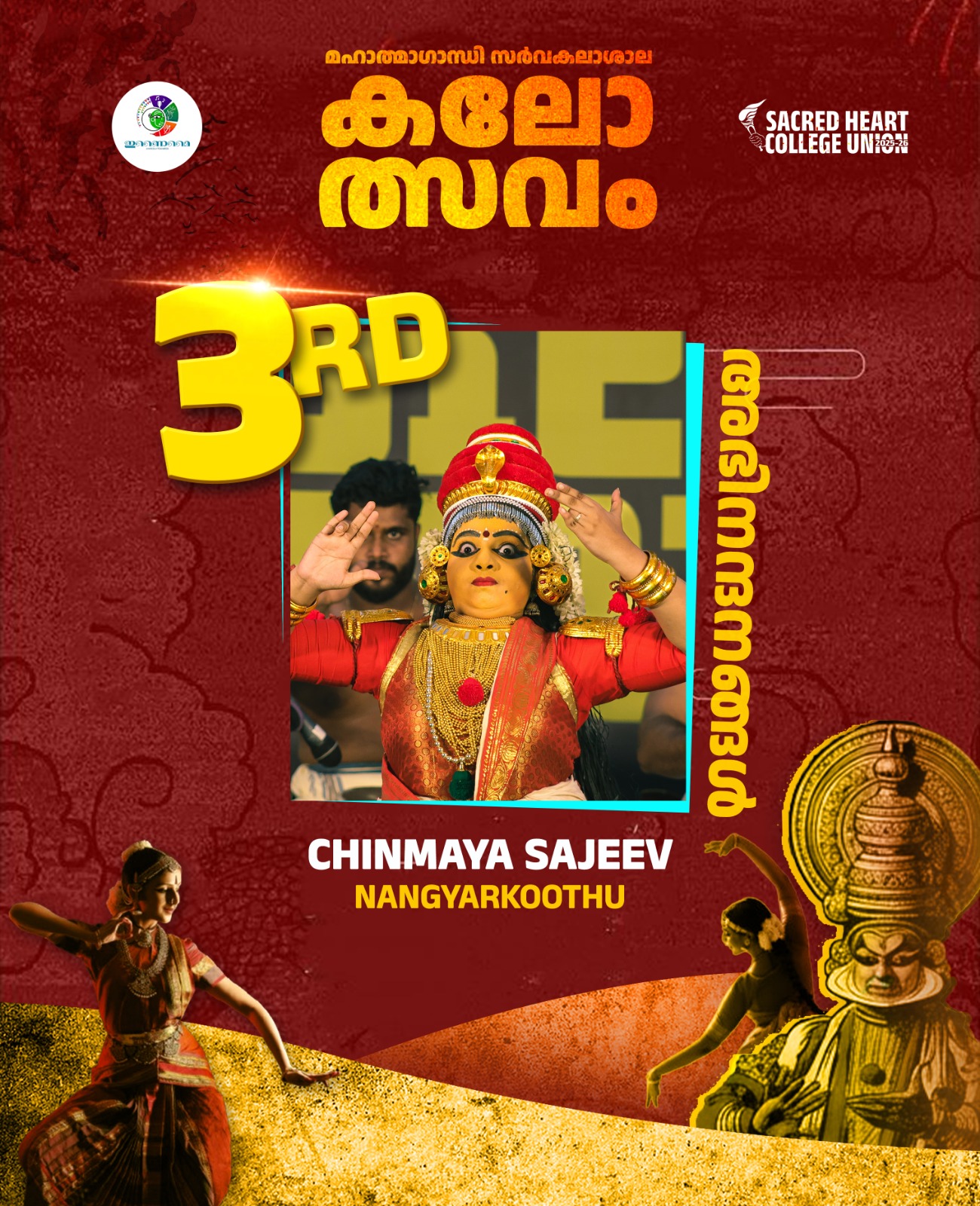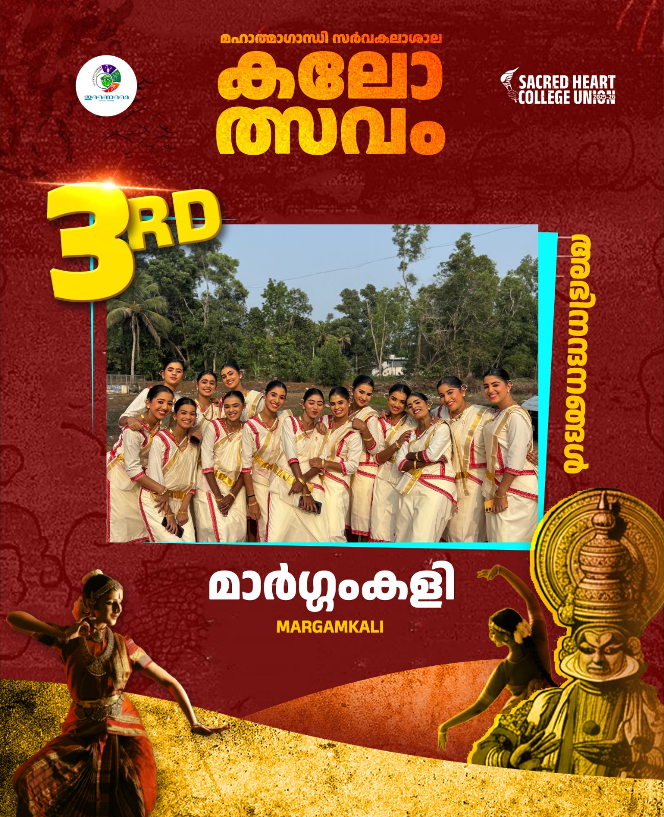 Sacred Heart College, Thevara proudly congratulates the following students for their remarkable achievements at the M.G. University Kalolsavam 2026, where the college secured the Second Runner-Up position. Their outstanding performances, dedication, and artistic excellence have brought great pride and recognition to the institution.