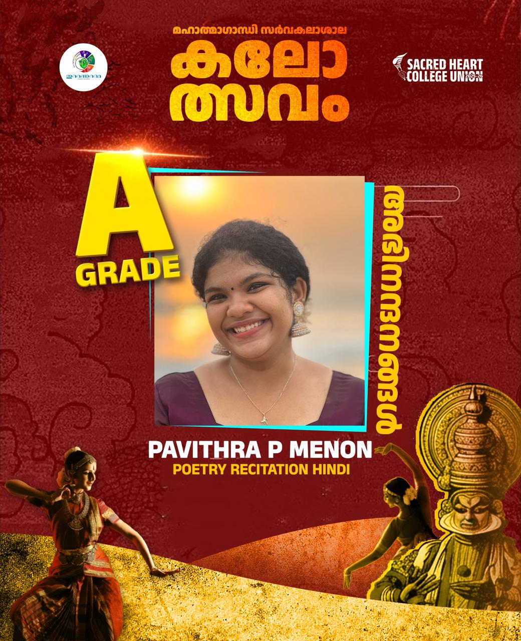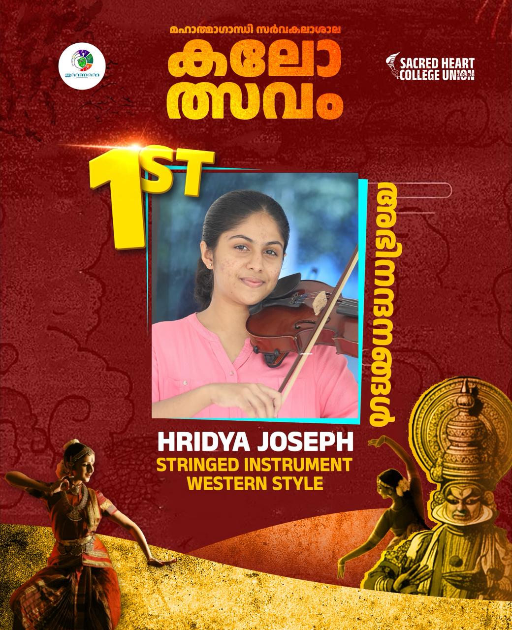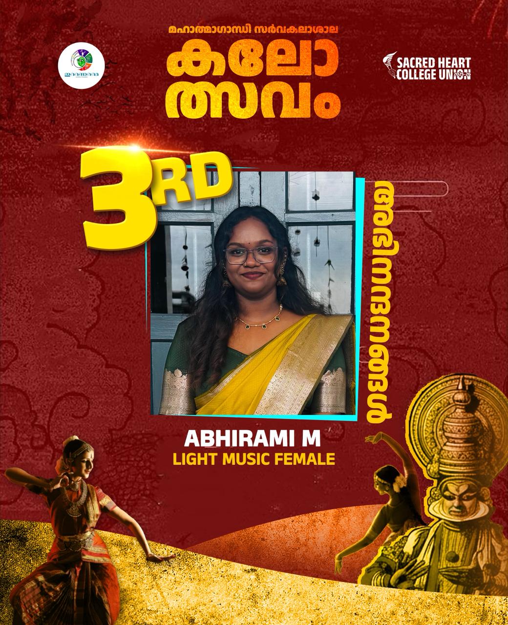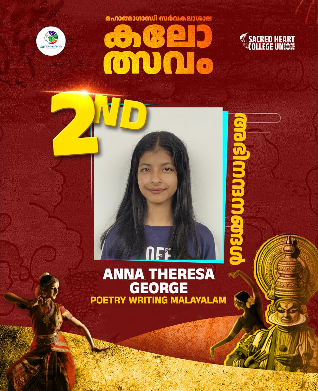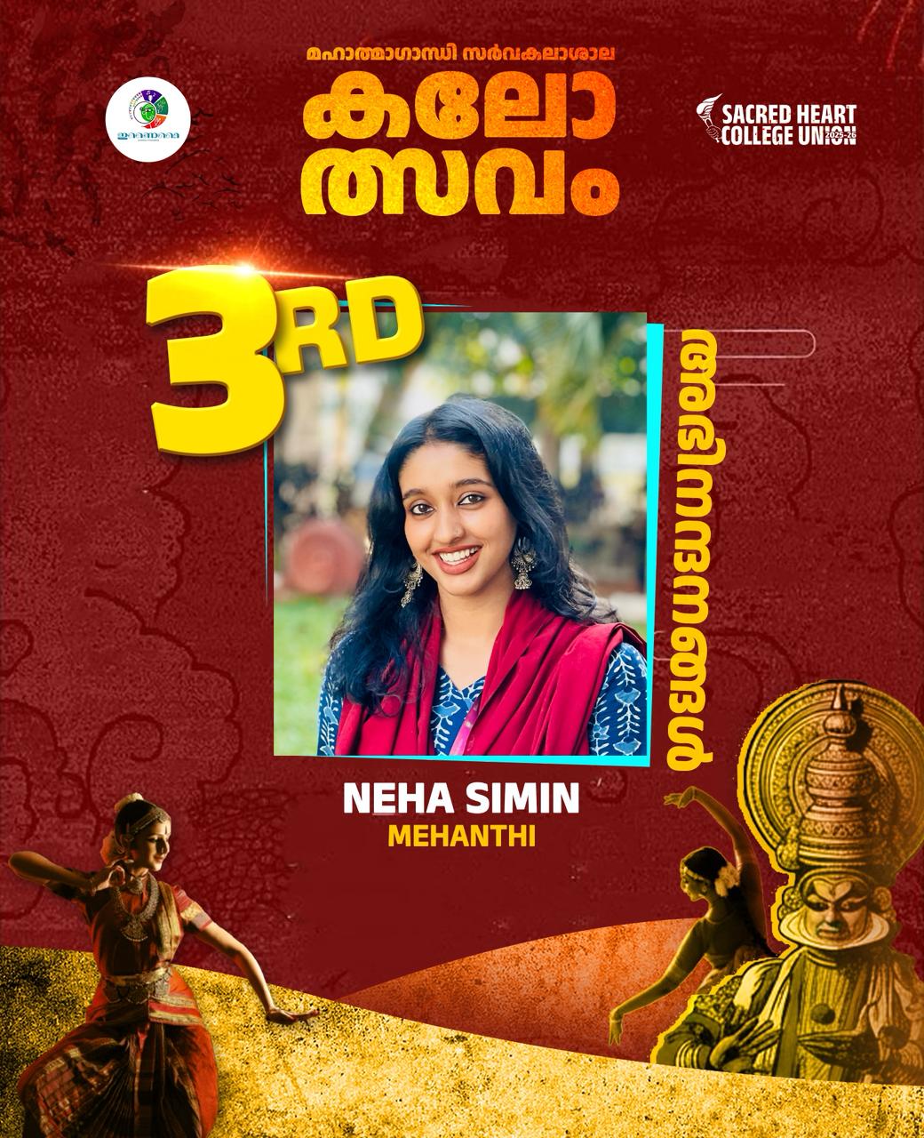 Sacred Heart College, Thevara proudly congratulates the following students for their remarkable achievements at the M.G. University Kalolsavam 2026, where the college secured the Second Runner-Up position. Their outstanding performances, dedication, and artistic excellence have brought great pride and recognition to the institution.