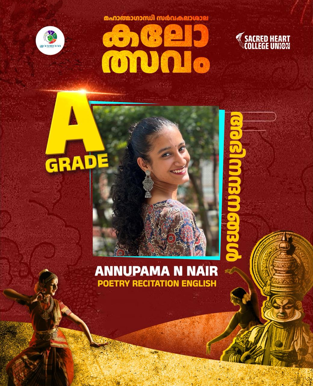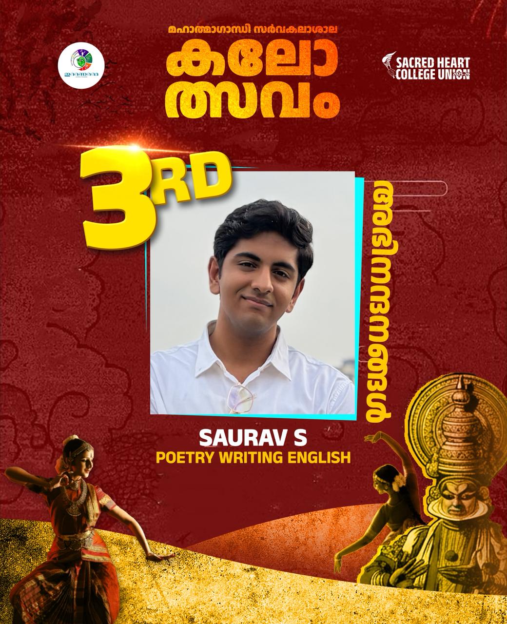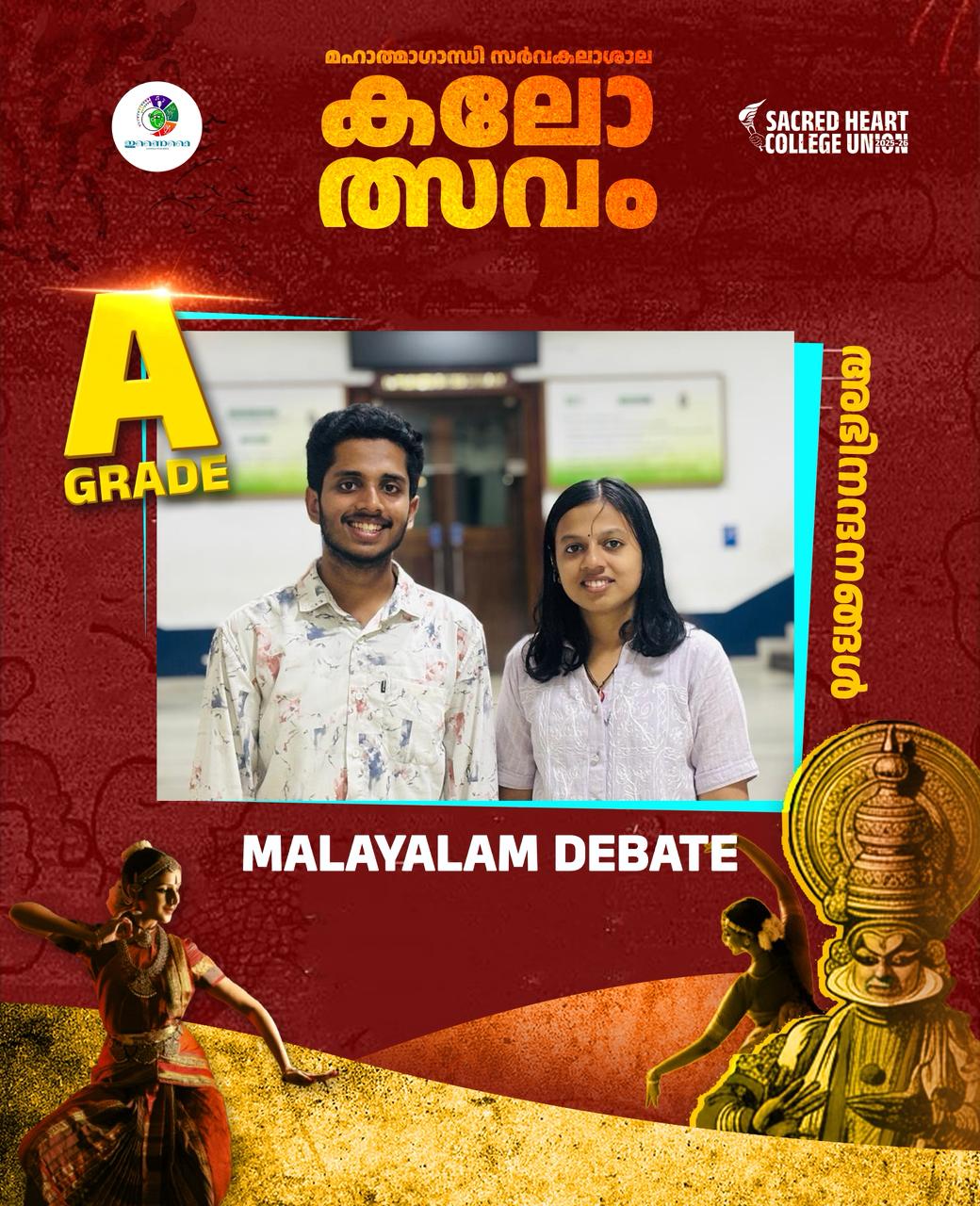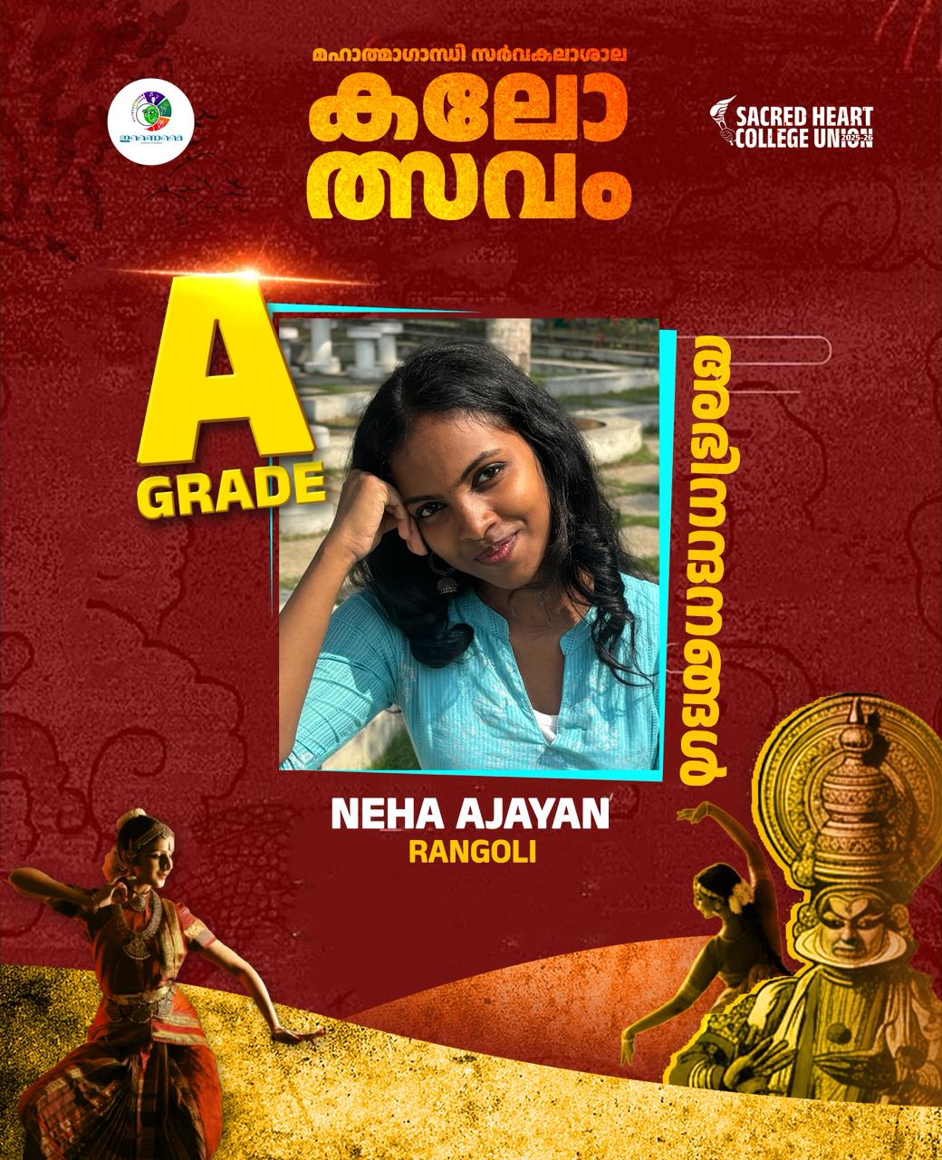Sacred Heart College, Thevara proudly congratulates the following students for their remarkable achievements at the M.G. University Kalolsavam 2026, where the college secured the Second Runner-Up position. Their outstanding performances, dedication, and artistic excellence have brought great pride and recognition to the institution.