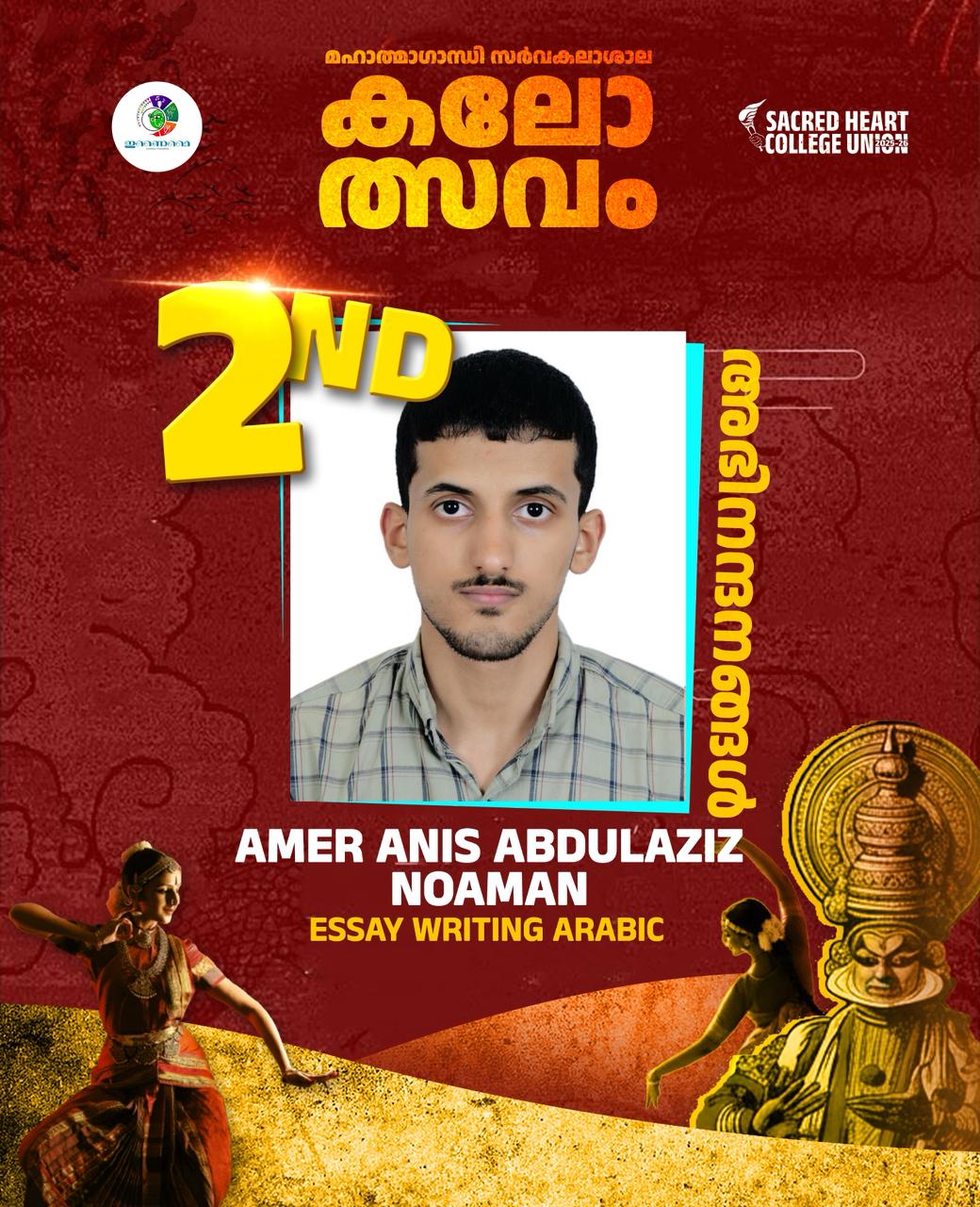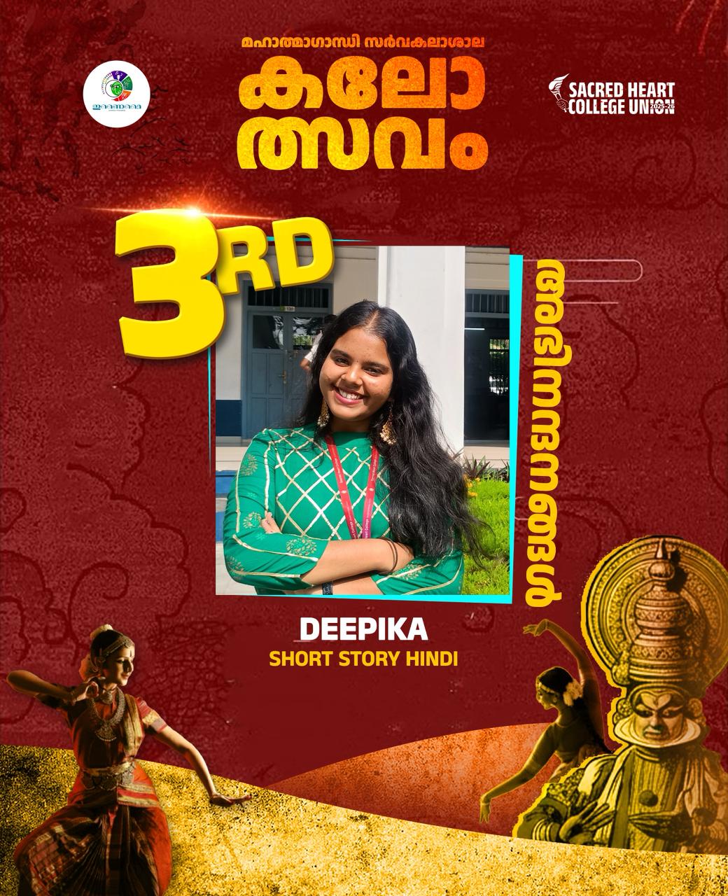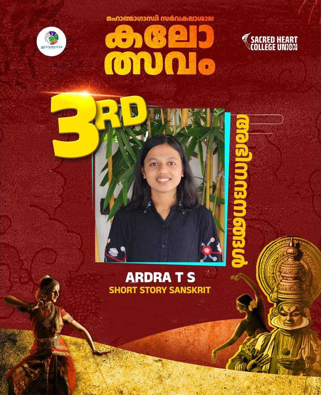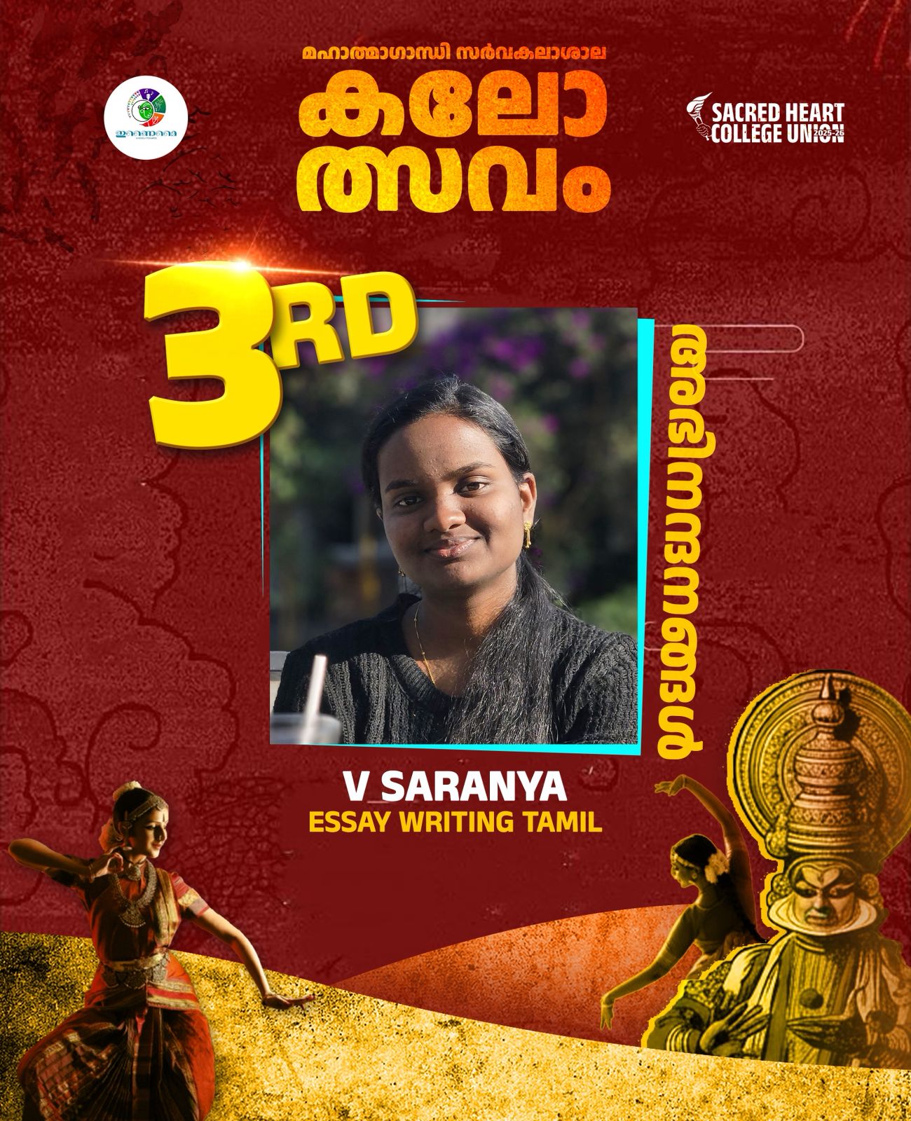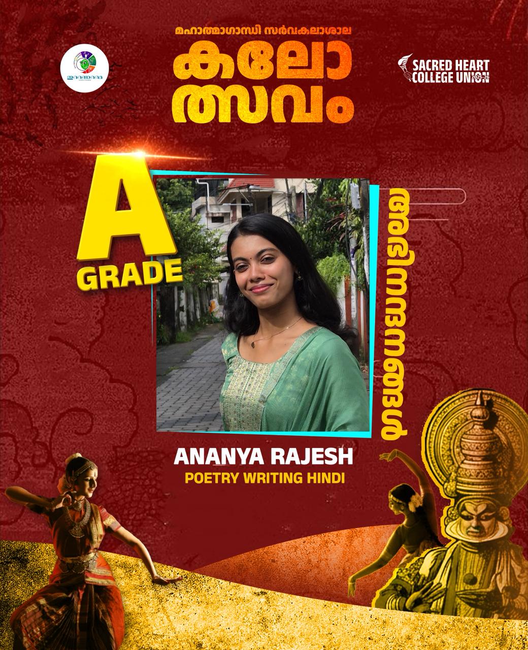 Sacred Heart College, Thevara proudly congratulates the following students for their remarkable achievements at the M.G. University Kalolsavam 2026, where the college secured the Second Runner-Up position. Their outstanding performances, dedication, and artistic excellence have brought great pride and recognition to the institution.